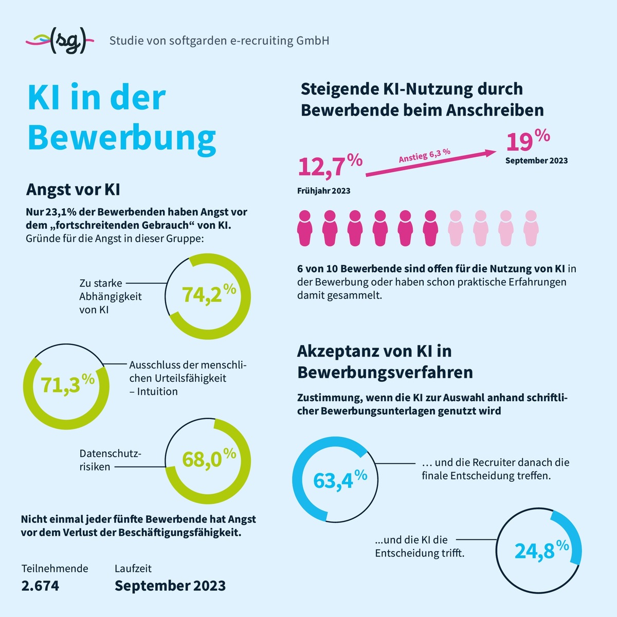 "Einige Bewerber haben begonnen, ihre Anschreiben mit Hilfe von Künstlicher Intelligenz (zum Beispiel ChatGPT) zu verfassen. Könntest du dir das auch vorstellen?" Diese Frage hat das HR-Techunternehmen softgarden erstmals im April/Mai 2023 gestellt. Damals antworteten 12,7% mit "Ja, das habe ich schon einmal ausprobiert".