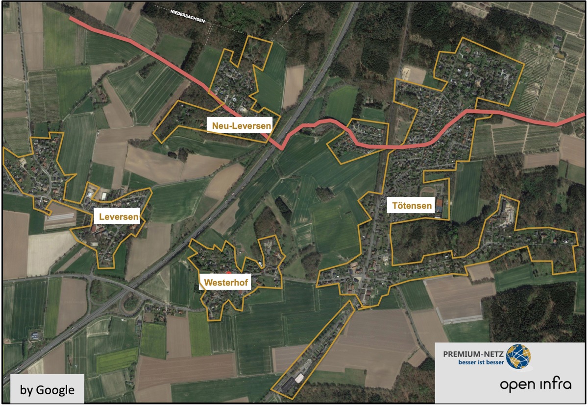 Jetzt können die ersten Städte und Ortschaften, die in der Nähe der neuen Ost-West-Trasse liegen, kurzfristig auch an das Glasfasernetz angeschlossen werden. Hierbei handelt es sich um Tötensen, Leversen und Westerhof. Die Ansprache der Haushalte wird parallel zu den Bauarbeiten erfolgen. Eine Anbindung ist somit sehr schnell möglich.