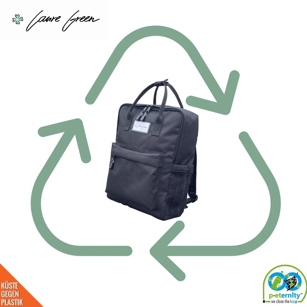 Erster echt nachhaltiger Recycling-Rucksack bei Laure Green / Gebrauchte Rucksäcke wandern vollständig zurück in den Recycling-Kreislauf / 10 EURO pro verkauftem Rucksack gehen an Küste gegen Plastik