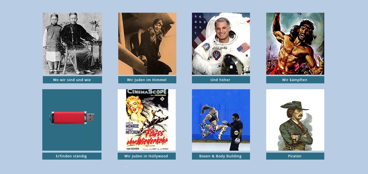 Eine unkonventionelle Online-Ausstellung zum Festjahr "1.700 Jahre jüdisches Leben in Deutschland." 1.000 Bilder und Texte zeigen Juden auf allen Kontinenten: geniale Erfinder, sexy Models oder furchterregende Piraten. Berühmte Boxer, gefeierte Kriegshelden oder bekannte Schauspieler. Die Ausstellung präsentiert selbstbewusst die herausragenden Leistungen von Juden in Deutschland und anderen Ländern - und führt antisemitische Vorurteile ad absurdum.