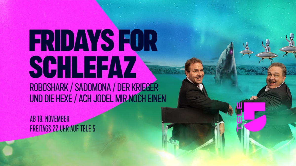 Die Filme der SchleFaZ-Winterstaffel stehen fest! Bereits ab 19. November sind die Blockbuster der „SchleFaZ“-Winterstaffel wieder freitagabends bei TELE 5 mit zahlreichen Schundfilm-Schätzen im Programm. Die TELE 5-Schrottfilm-Koryphäen Oliver Kalkofe und Peter Rütten versprechen: “Das wird ein krachender Scheißfilm-Winter! Haifilm inklusive!”