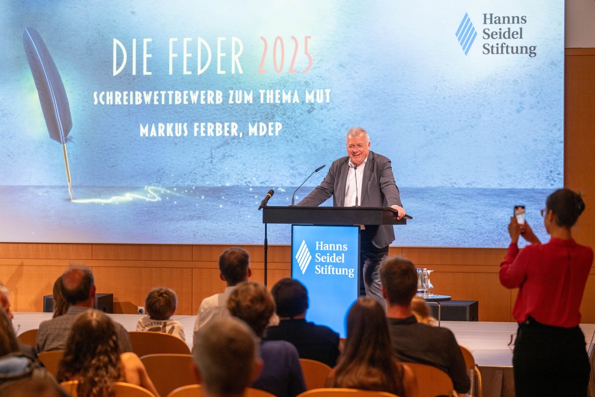 Insgesamt 31 Autorinnen und Autoren überzeugten mit ihren Werken und wurden beim Schreibwettbewerb „Die Feder“ der Hanns-Seidel-Stiftung (HSS) prämiert, der in diesem Jahr unter dem Motto „Mut“ stand. Über 700 Einsendungen erreichten die Hanns-Seidel-Stiftung. Ein neuer Rekord. „Wir sind einmal mehr überwältigt!“, freut sich HSS-Vorsitzender Markus Ferber, MdEP, „nicht nur von der großen Resonanz, sondern auch von der Qualität und Leidenschaft, die die Beiträge auszeichnen.“ Die Preisträger erhielten eine Urkunde, das Preisgeld von 50 Euro sowie eine gedruckte Veröffentlichung in einem Sammelband.