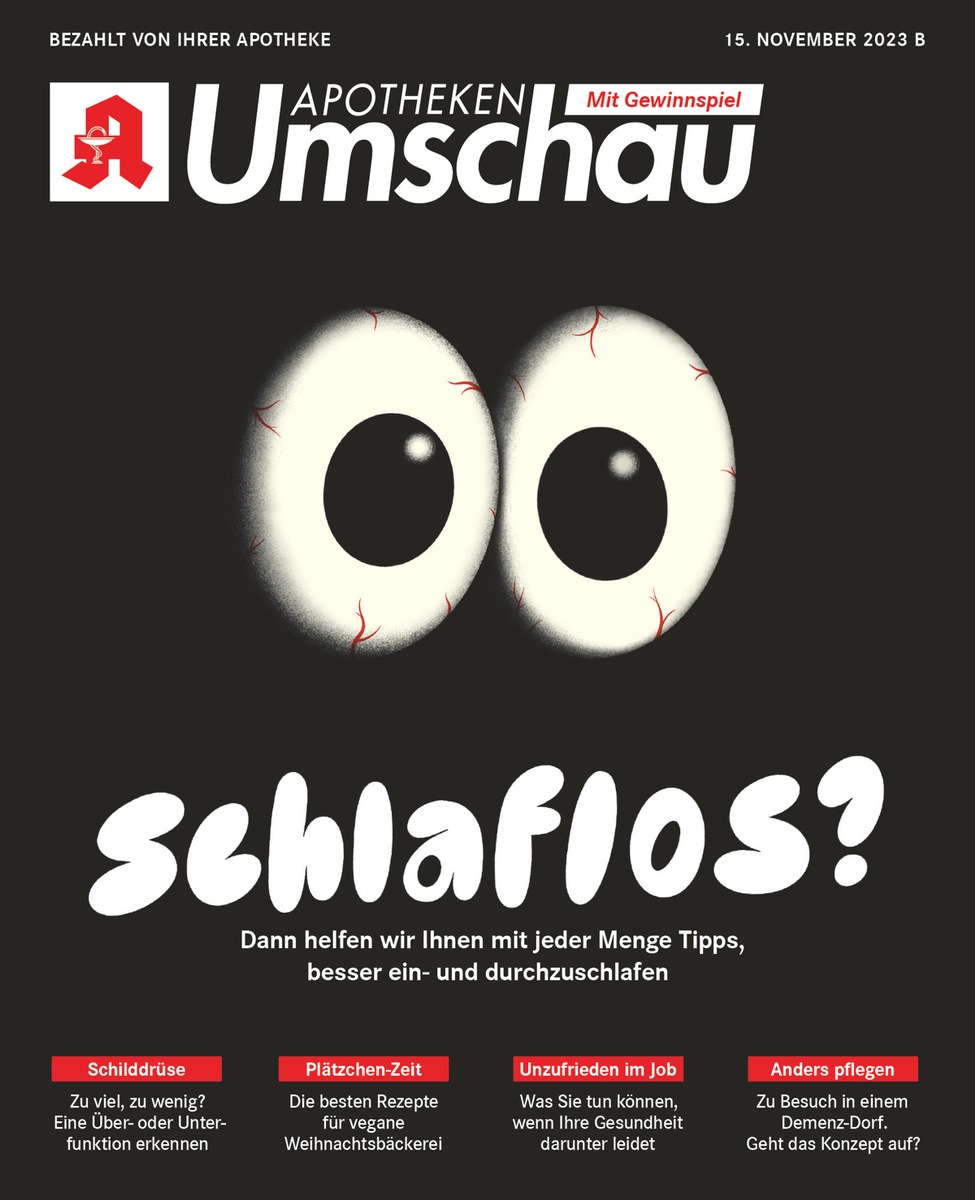 Diese Meldung ist nur mit Quellenangabe zur Veröffentlichung frei. Das Gesundheitsmagazin "Apotheken Umschau" 11B/2023 ist aktuell in den meisten Apotheken erhältlich. Viele weitere interessante Gesundheits-News gibt es unter https://www.apotheken-umschau.de sowie auf Facebook, Instagram und YouTube.