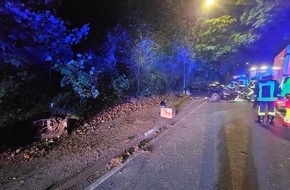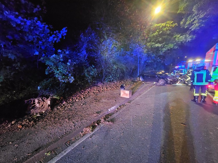 Datum: 22.09.2025/ Uhrzeit: 20:51 Uhr/ Dauer: 1 Stunde 34 Minuten/ Einsatzstelle: Deller Straße/ Einheiten: Löschgruppe Delle/ Polizei/ RTW/ Bericht (lb): Am Montagabend, um 20.51 Uhr, wurde die Löschgruppe Delle der Freiwilligen Feuerwehr Breckerfeld in die Deller Straße zu einem Verkehrsunfall alarmiert. Ein PKW war von der Fahrbahn abgekommen, hatte ein Mäuerchen getroffen und war dann nach einigen Metern zum Stehen gekommen. Durch den Aufprall liefen Betriebsstoffe aus dem Fahrzeug. Die vier Fahrzeuginsassen konnten sich selbstständig befreien und wurden durch den Rettungsdienst betreut. Die Feuerwehr sperrte die Straße ab. Sie streuten die ausgelaufenen Betriebsstoffe mit Bindemittel ab, stellten den Brandschutz sicher und klemmten die Batterie des verunfallten Wagens ab. Die Polizei übernahm die Aufnahme des Unfalls. Die vier Fahrzeuginsassen wurden alle in verschiedene Krankenhäuser transportiert. Das verunfallte Fahrzeug war nicht mehr fahrbereit und musste abgeschleppt werden. Nachdem der PKW durch ein Abschleppunternehmen abtransportiert wurde, kümmerte sich die Feuerwehr um die Reinigung der Fahrbahn von dem Bindemittel. Im Anschluss konnte die Sperrung der Deller Straße wieder aufgehoben werden. Der Einsatz endete mit der Ankunft im Deller Gerätehaus, um 22:25 Uhr. ***Bitte beachten Sie das mitgesendete Bildmaterial. Dieses darf unter der Angabe "Foto: Feuerwehr Breckerfeld" zweckgebunden für die Publikation der vorstehenden Pressemitteilung verwendet werden. Jede weitere Verwendung für redaktionelle Zwecke bedarf unserer schriftlichen Genehmigung.***